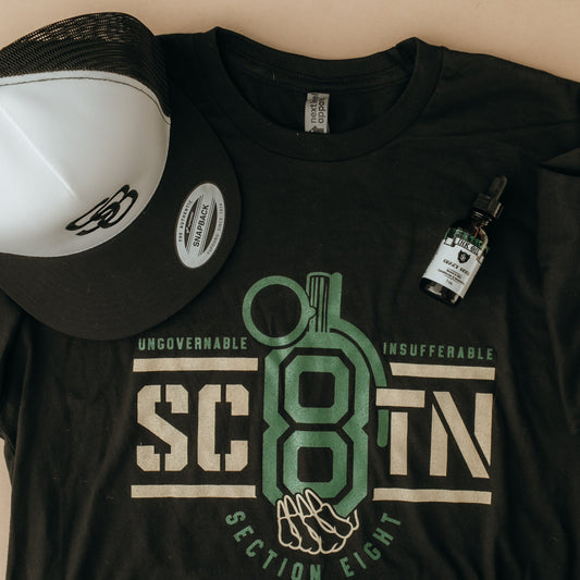 Section 8 Stash: Men's Grooming Gift Set - Beard Oil, T-Shirt & Hat